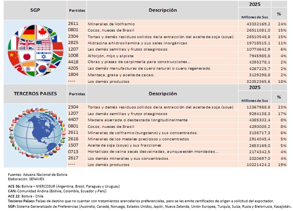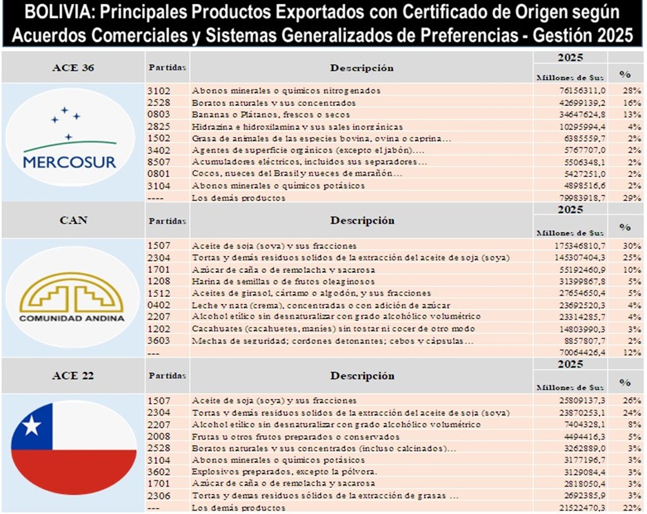 BOLIVIA: Principales Productos Exportados con Certificado de Origen según Acuerdos Comerciales y Sistemas Generalizados de Preferencias Gestión 2025 2020-03-26